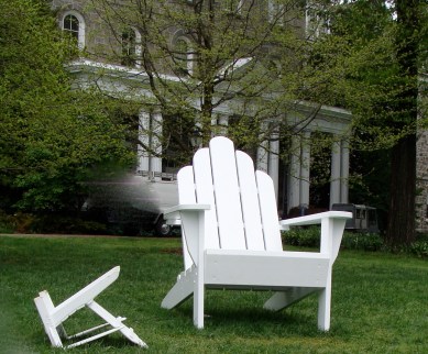 What’s the big deal about a chair? Actually, this chair is so big, about four times larger than a typical chair, and it’s a work of art that has taken on a life of its own. Jake Beckman, a student at Swarthmore College, conceived and built the original chair, which found a place among the other standard-sized Adirondack chairs that dot the stretch of lawn in front of the main hall on campus. Even The Colbert Report featured a segment about the famous chair.