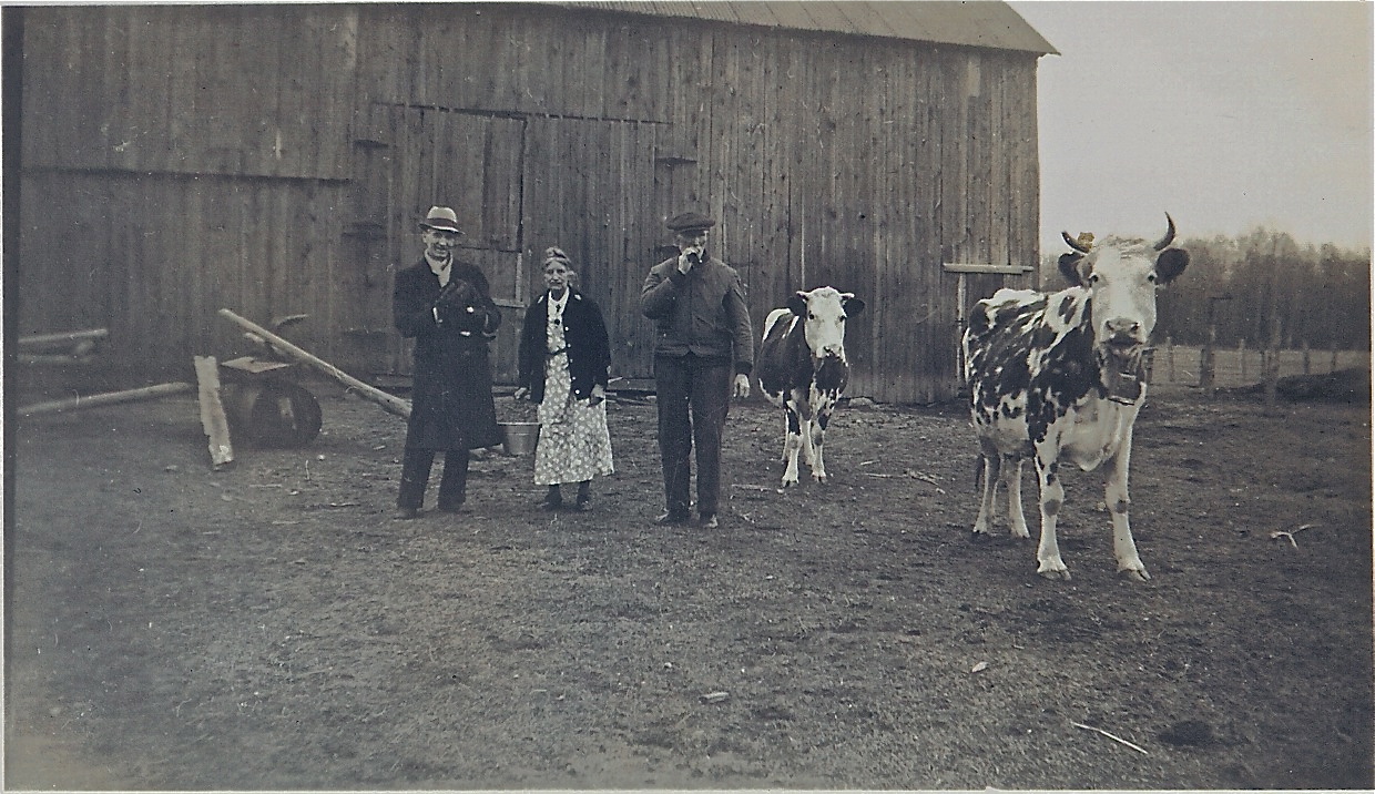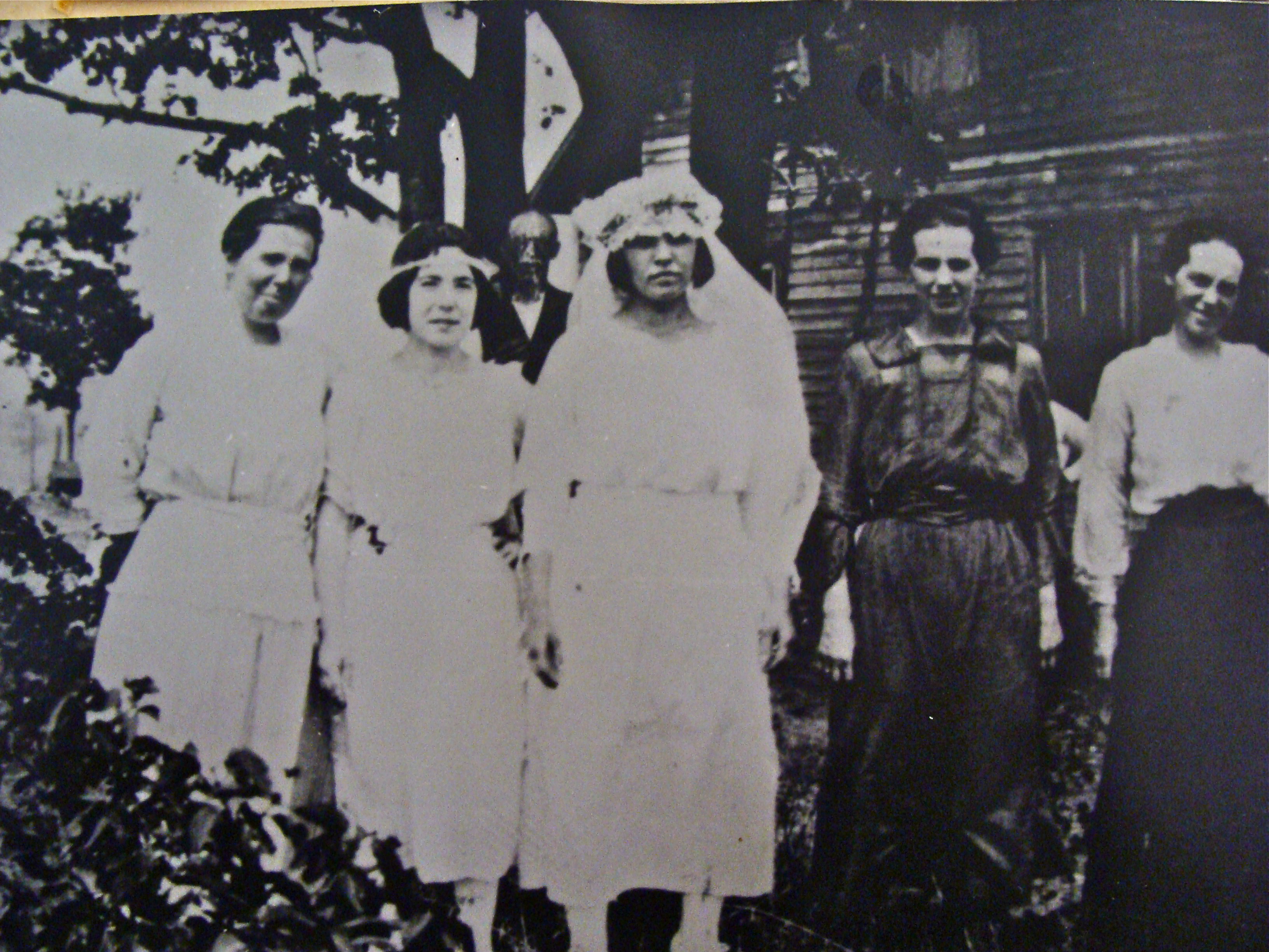 Helen told us several stories of growing up in Stalwart.  She remembered her first holy communion, sitting on Jozef’s lap on the trip over to the church. Unfortunately, her dress did not fit right so the womenfolk, using straight pins, pinched and pinned the dress to the right size. Helen said she often would translate letters from English to Polish for Jozefa. Chores occupied most of their time on the farm: milking cows, tending the garden, baking bread, picking berries and churning butter.  They would use farm produce as money in exchange for flour and sugar. Most farmers made their own moonshine and wine from gooseberries, cranberries, or dandelions. Saturday evening folks would gather for singing and  polka and square dancing. The Belinski’s put down a special wood floor just for the dance parties. I remember that my Grandfather loved dancing.