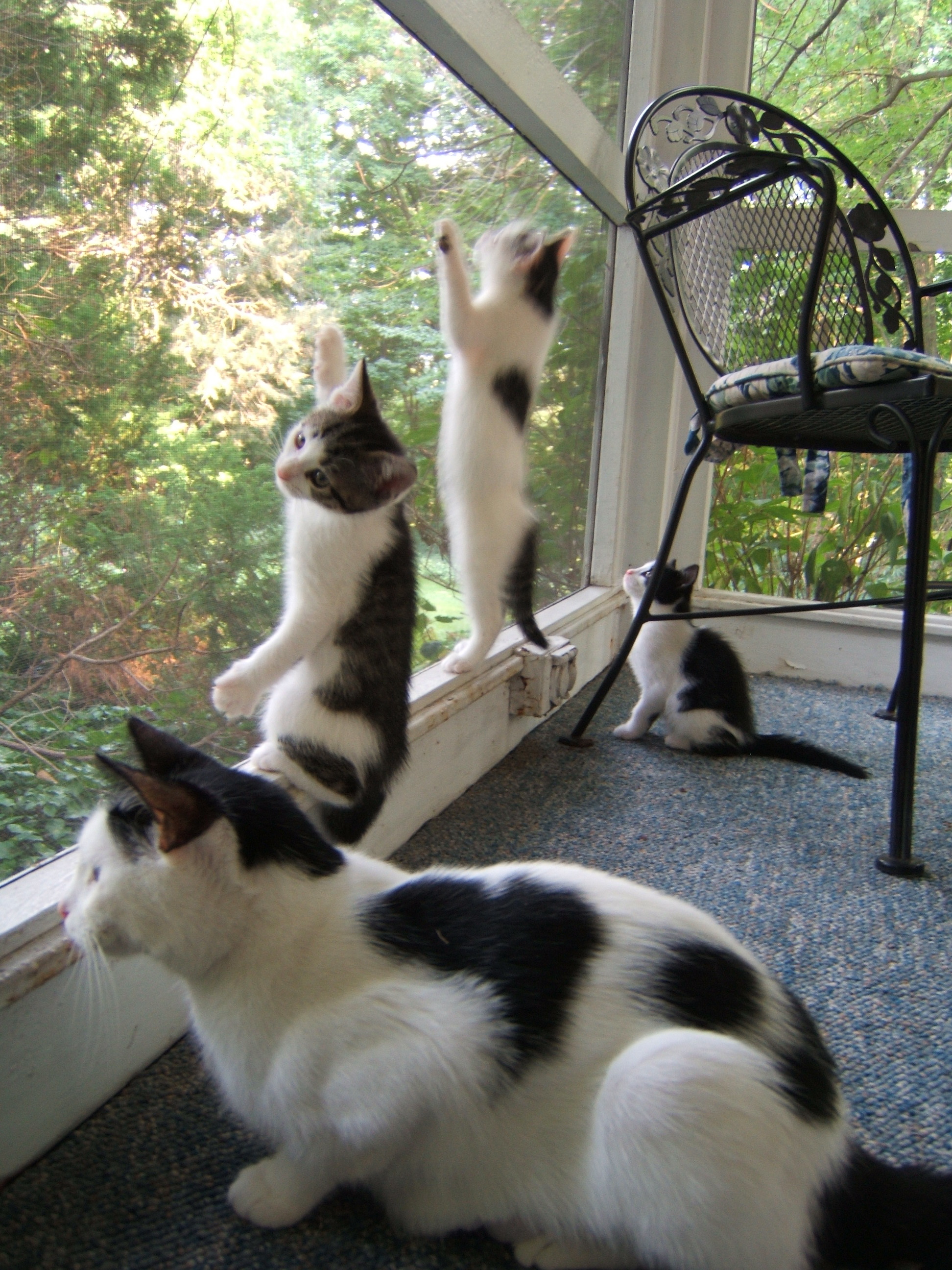 I needn’t have worried. Mamma cat did everything right, giving birth and taking care of her seven kittens. Our reward for taking her in . . .