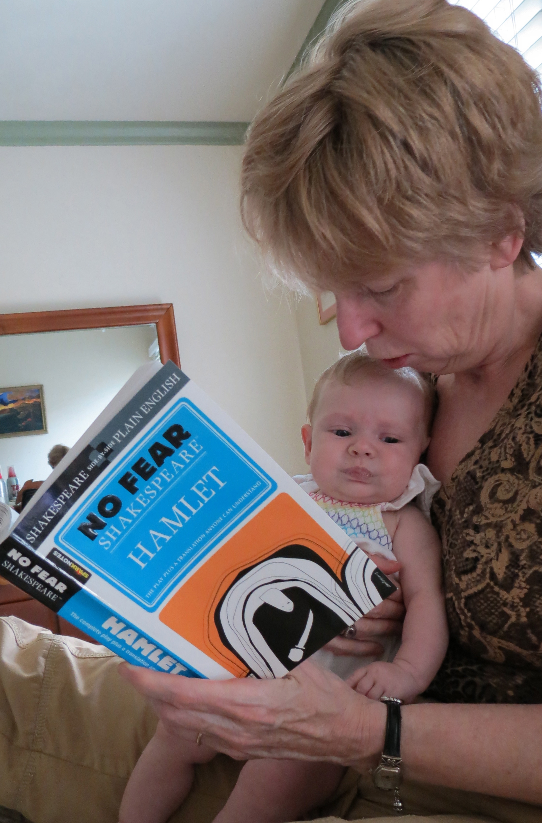 Facebook Snark So Sindy posts on Facebook . . . In the last 2 days Miss Alexandra has: learned to crawl, learned to pull herself up, learned to say doggie kitty mama dada and hair, hi, leaned to wave hi, and broken a tooth. seriously. Kid needs to chill out. lol She saved it all for when Kae Kalwaic would be in town. 😀 So I respond . . . Miss Alexandra continues to excel under Great Auntie’s tutelage . . . picture to follow. Never too soon to start with pen and quill.