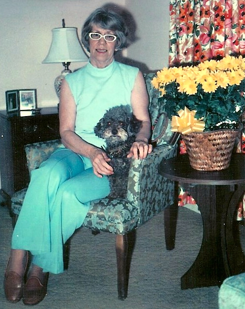 Suzie fit right in with her adopted family and became my mother’s constant companion. Mom would occasionally dress Suzie in her little outfits. Suzie was always present at family events as Mom and Dad took her everywhere. The grandchildren loved Suzie.