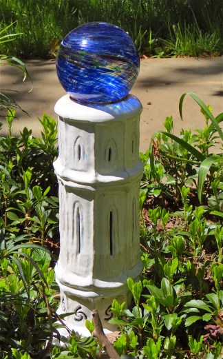 My last project was more abstract and larger than the other two. At one point attempting to close it up at the top, I thought I might have inadvertently caused the entire piece of fall to pieces. I quickly added extra clay on the inside to support the structure. I applied Bobby’s white glaze and sent it to the gas kiln. A little Jon Luke Pickard and a little John Lennon were the inspiring forces to this project, which will find its way into the garden.
