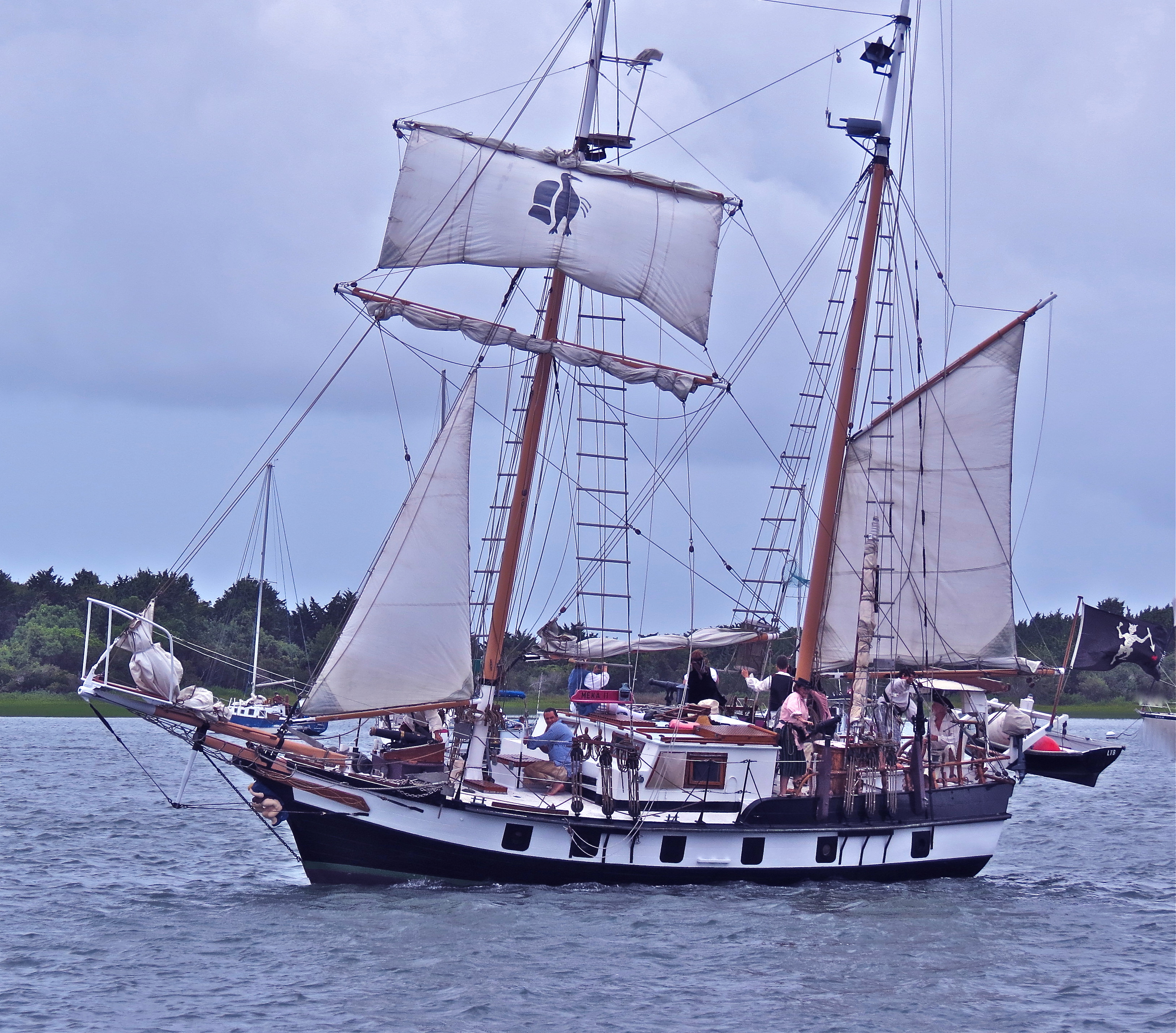 Turns out, we arrived just in time for a pirate invasion! Folks lined the piers and watched as the events unfolded on the river. A classic topsail schooner led the attack by sea, her pirate crew taking aim at the shoreline blasting her cannons. Muskets fired back in defense. Pirates in longboats plowed the water, and buccaneers on land brandished swords. Townsfolk cheered as the pirates clashed with the military guard.