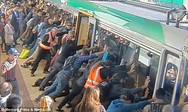 Did you see the news article from Australia where commuters spontaneously joined together to tilt the train so that a man could free his leg wedged in the gap? It was a heartwarming story of folks, seeing a catastrophe unfolding, pitching in to help the person who could not help himself.