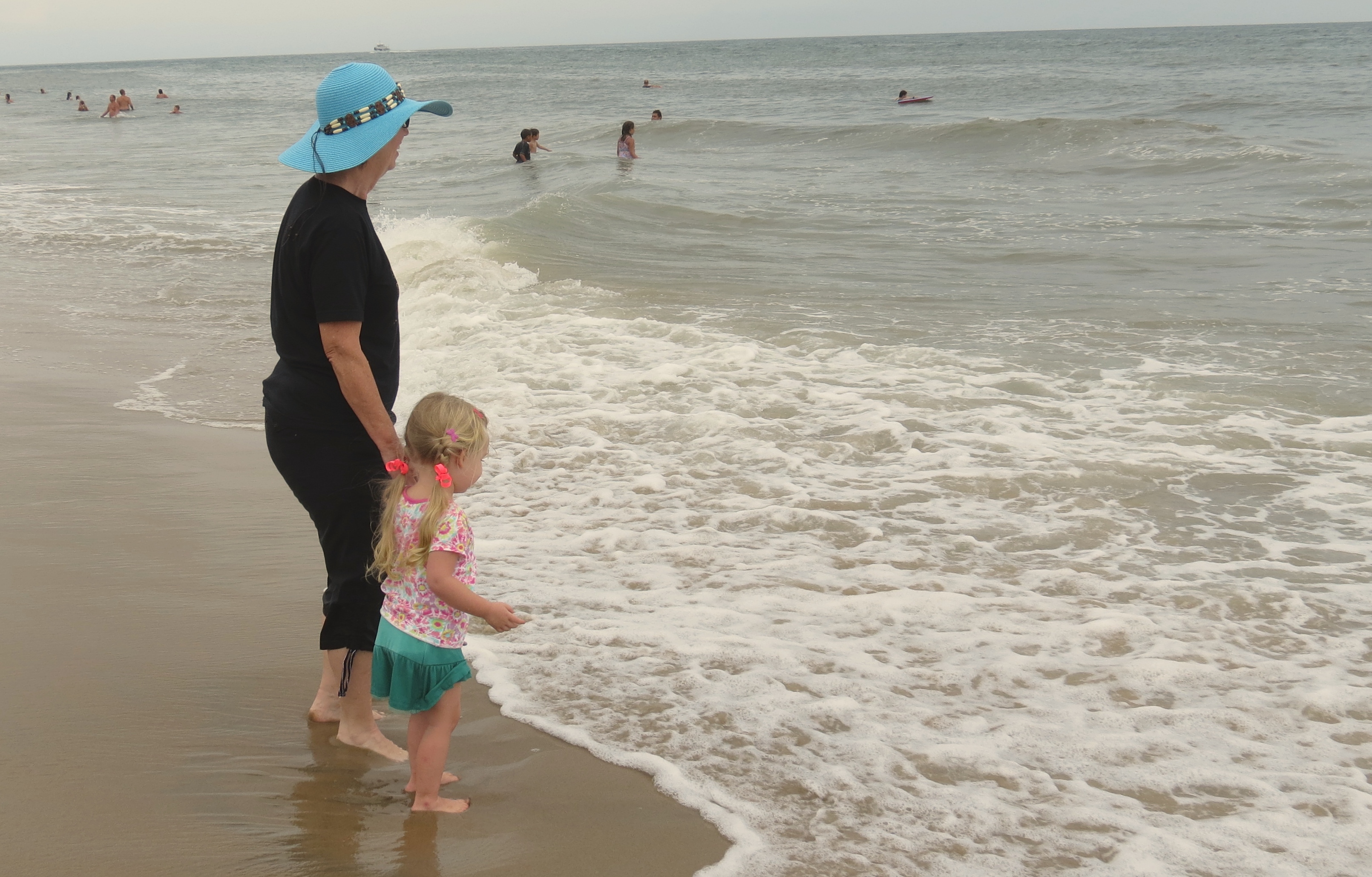 Alexandra, my three-year old great-niece, jumped in the waves as they slapped against the shore, sometimes even knocking her over. Alex held my hand tightly as the anticipation of the rolling force tossed her into the foam. We returned to the blanket to dry off, but almost immediately Alex was off and running along the shoreline, nonstop, her little legs carrying her swiftly across the sand. I said to myself, “This is good exercise for me,” as I shadowed her down the beach.