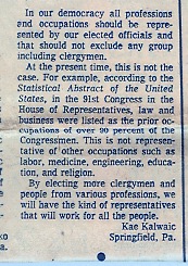 I wrote several letters to the local newspapers. The first letter was published in The Evening Bulletin, on June 15, 1974, Saturday Forum: Bulletin Readers Speak Out. The subject was Church and State: Clergy in politics, in favor and against.