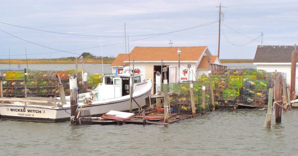 Remote island societies slow the cultural clock, as happens on Tangier where everything from their language, occupations and way of life varies from the mainstream. Linguists have studied their speech, as the islanders speak a unique restoration era dialect of American English with language roots in Scotland and Cornwall. We noticed that when native residents spoke to one another, we could barely understand the conversation, with varied intonations and a unique linguistic cadence. Without fast food restaurants, chain motels, traffic and cinemas this tiny community contrasted dramatically from our suburban bubble. But outward appearances can be deceiving; what the “soft shell crab capital of the world” shares with its mainland neighbors are economic and environmental problems. Hard-working watermen continue to eek out a living from the increasingly polluted waters of the Chesapeake Bay. According to Wikipedia, the per capita income for the town was $24,042. About 22.6% of families of the population live below the poverty line. The watermen resent government regulations and question whether they are being the scapegoat to all the Bay’s environmental problems. If regulations restricted fertilizer runoff, for example, crabs might flourish. Tangier barely rises above sea level and water floods the entire island during storms or high tides. We ignored the phases of the moon, which also came into play during our visit.