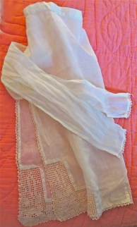 On a cursory inspection, the pile of linens seemed amorphous . . . sort of lacy stuff, I would call it. Was it lace–crochetted, knitted, or embroidered? Were the threads silk, linen or cotton?