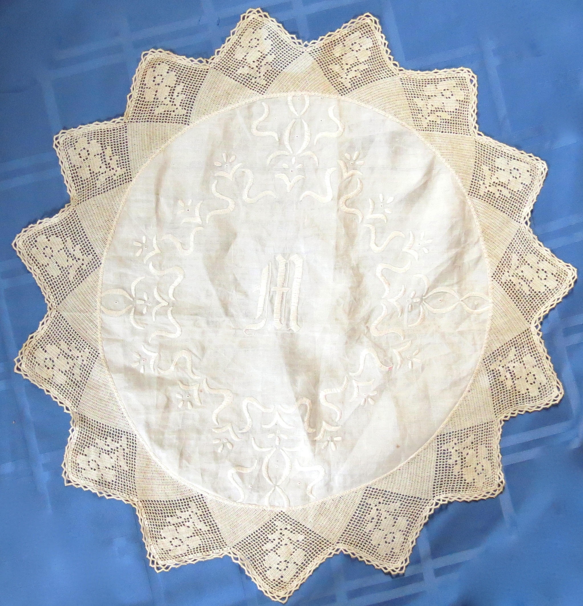 Years ago my Mother gave me my Grandmother’s needlework from the early 1900s. Linen tablecloths, napkins, handmade doilies, place mats, coasters and other assorted pieces remained in a disheveled pile in the attic for years. Occasionally, I would pull out a doily or bureau scarf to use around the house, but with so many pieces to choose, most were left untouched.