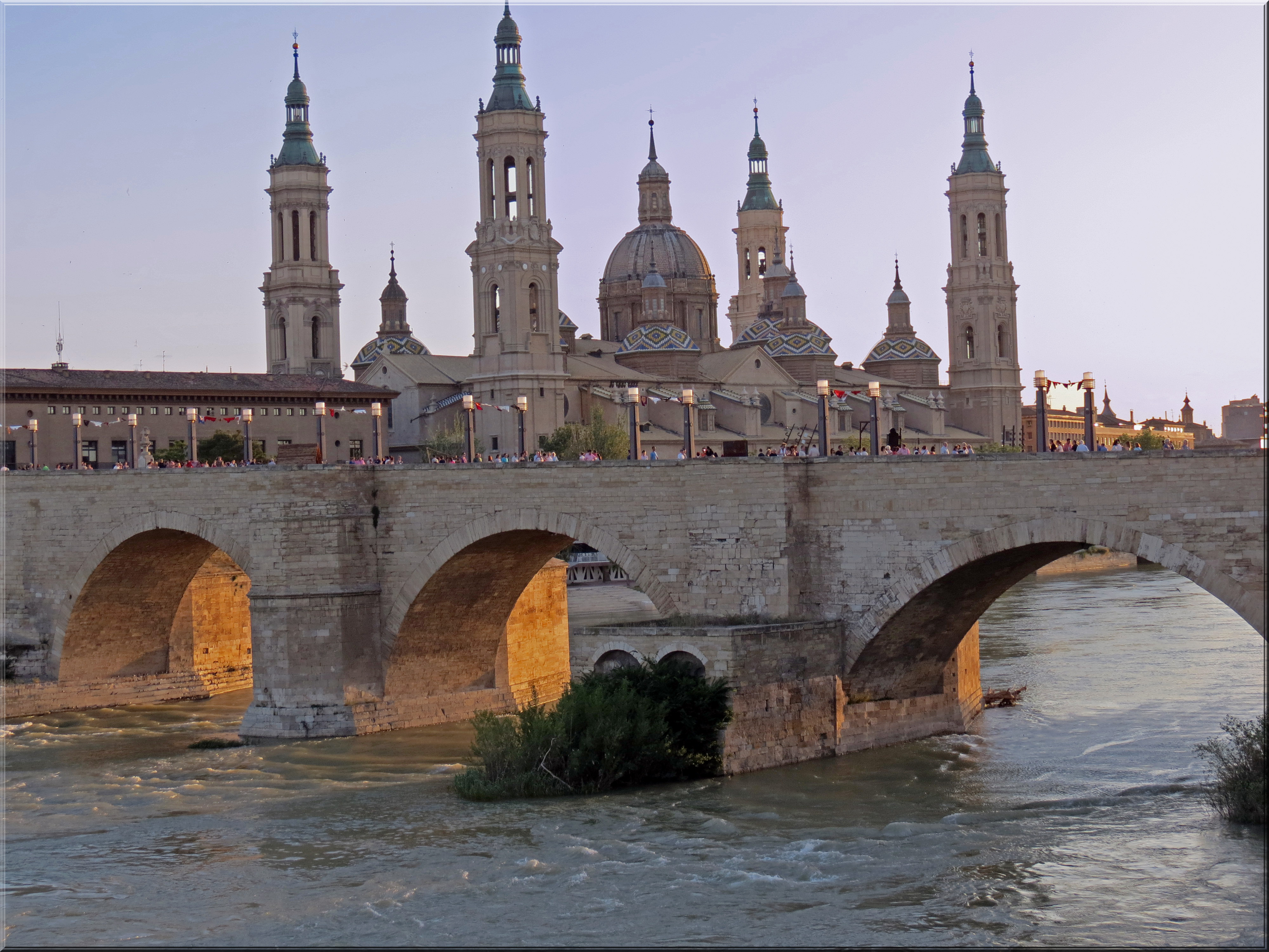 Iberian tribes lived by the Ebro River 2000 years ago when the Romans conquered the area. A Roman wall was being excavated just down the street from our hotel. Pilgrims stop at Zaragoza, and in particular, the Basilica of Our Lady of the Pillar, where legend has it that the Virgin Mary appeared to St. James, the apostle. Inside the Basilica, our city guide pointed out paintings and frescos by Francisco Goya, who was a native of Zaragoza. The church authorities did not appreciate his modernistic paintings; but after Goya became recognized as one of the greatest of European painters, the Church regretted their decision to stop his work from continuing.
