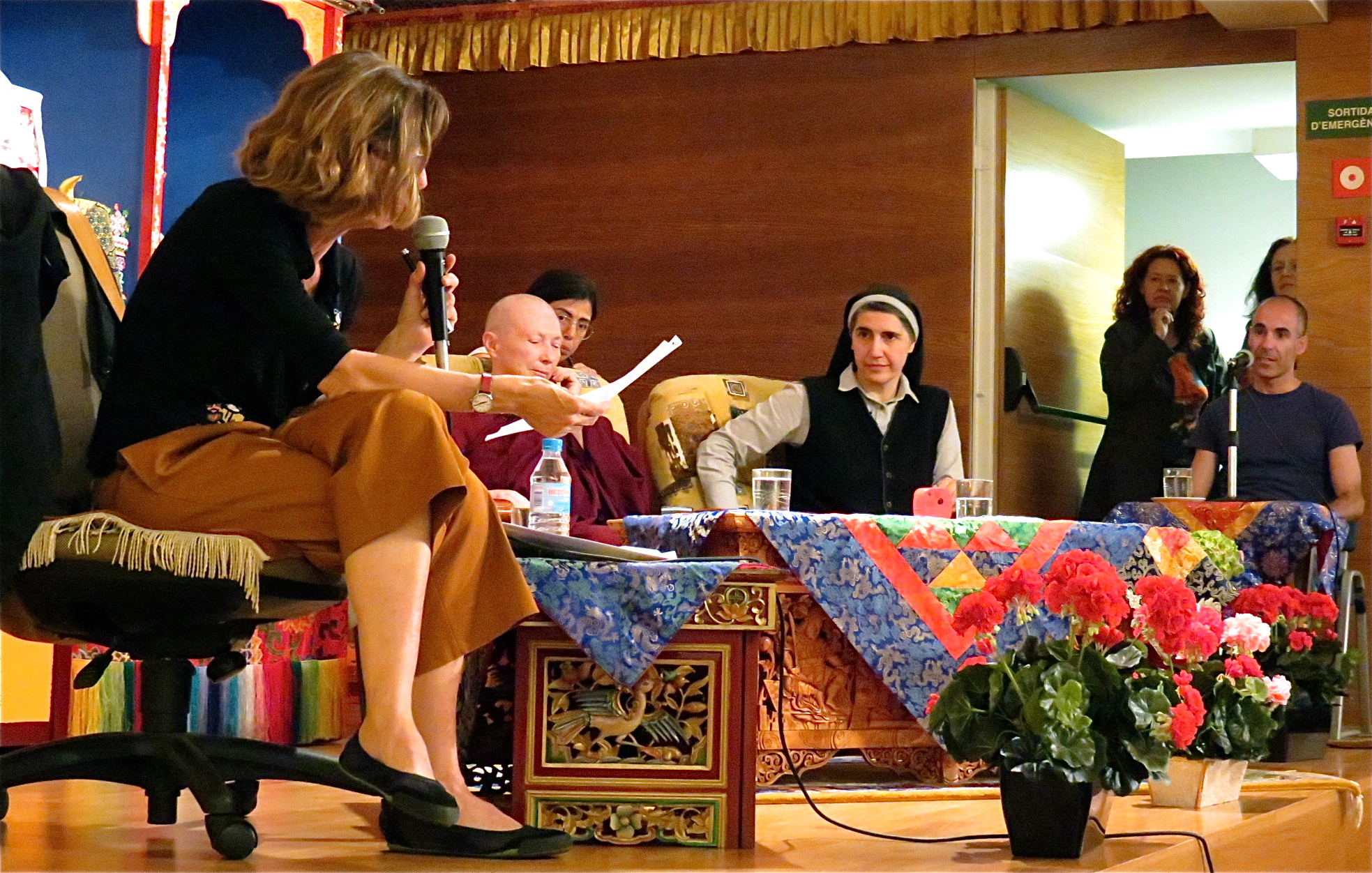 People lined up early and filled the space. I was lucky enough to have conversations with several women (thanks, Anna!), who helped me with translating what was transpiring since this event was in Catalan. Lekshe Karma Tsomo spoke in English and her part was translated for the audience. So I missed what Teresa said, but watched for the reactions from the listeners, who responded with laughter to many of her remarks. Teresa has a good sense of humor and even posted on her Facebook a satirical comedy sketch involving a meeting between her and the pope.