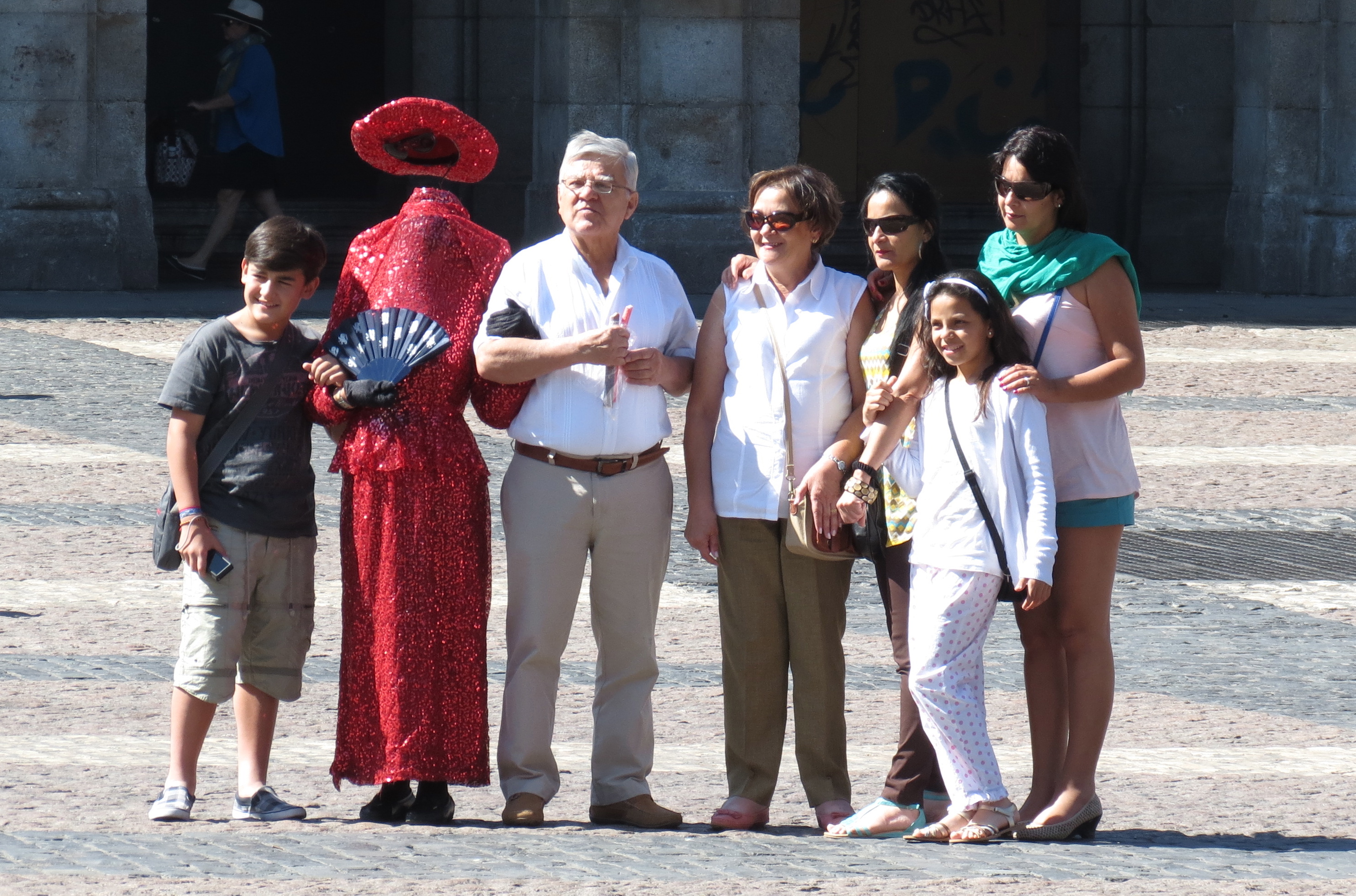 After a morning in Santiago de Compostela, a flight of a little over an hour and we were in Madrid. We left the suitcases off at the hotel and walked to the Plaza Mayor for lunch, where street performers entertained us. Some of these actors put a great deal of thought into their presentations although, in one case, the fellow just walked around wearing a Spiderman costume, also amusing, however.