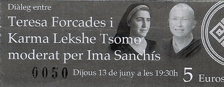 Women, Spirituality and Social Change, a dialogue between Teresa Forcades and Lekshe Karma Tsomo, chaired by Ima Sanchis; event described as an encounter between a Benedictine Catalan nun and a California Tibetan nun, who share the same commitment: to promote social change based on inner transformation.