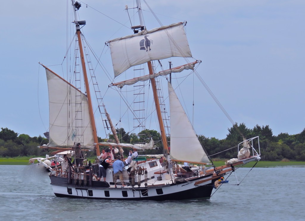 After all the excitement of the pirate invasion, we spent some time exploring this quaint seaport village. As a historic site, the town has a number of restored buildings, some dating back to 1778. You can hop a double-deck bus for a tour, and a guide can take you through the 300 year-old Old Burying Ground. On Front Street, the North Carolina Maritime Museum features exhibits of the maritime history of the area. A variety of shops and restaurants line the main street along the waterway. While wandering along a side street, we came across the Beaufort Grocery and went in for lunch. We ordered “North Carolina caviar,” which turned out to be a delicious bean salad, the best I’ve ever had. From the menu we selected “Gougeres,” a pastry made of choux dough mixed with cheese, a first-time treat.