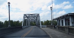 Spanning the river, a bridge dating back to 1928 retains the claim of the only S-shaped swing bridge. Local citizens initiated a campaign to save the bridge as it now has weight limits; officials require that school buses take another route into town.
