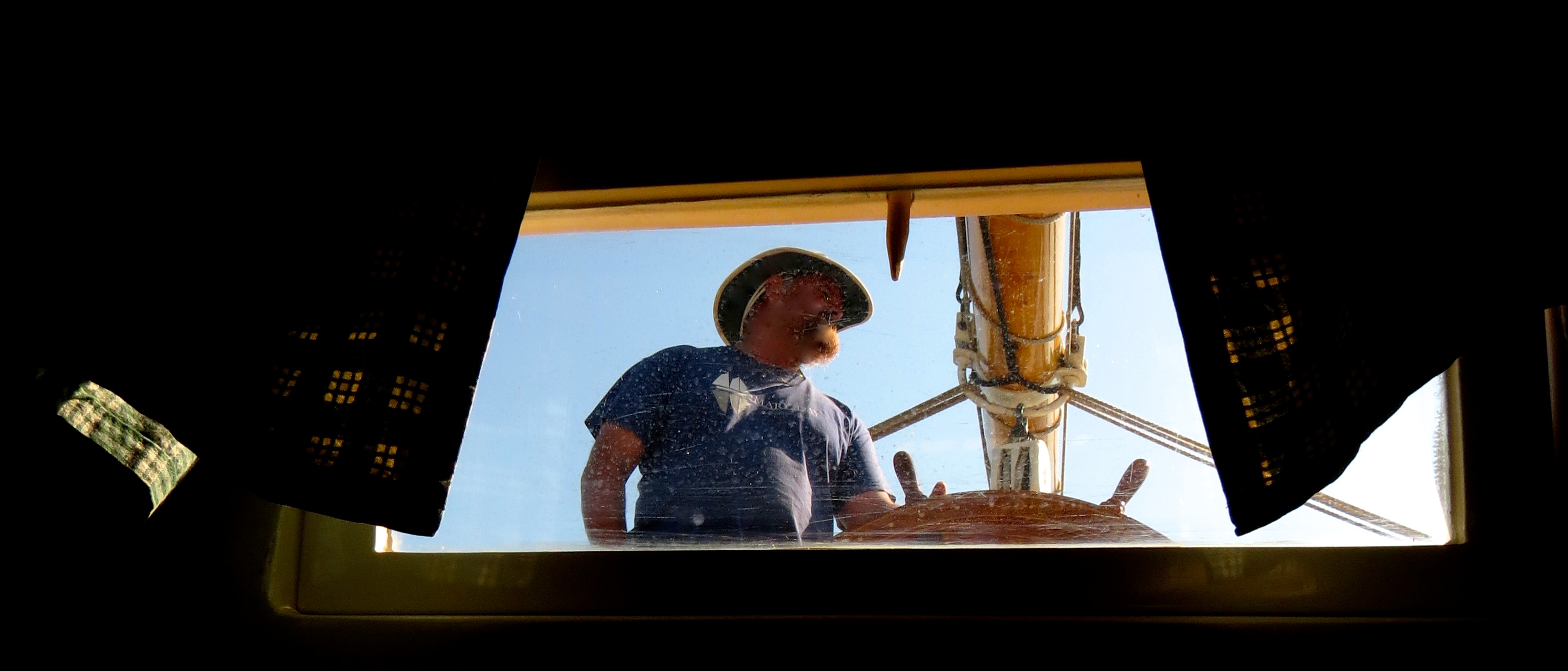 It’s 8:30 in the evening and the sun has set, I stretch myself into the blankets. Rain falls against the window above my bunk. I hear the strains of a guitar from the schooner anchored close by. I’ve been sleeping sounding. I deliberately have to think about problems at home, as sailing seems to blow difficulties and stress away. Mindful meditation has taught me to try to live in the moment. I’m just thinking about the aroma of yeast and homemade bread tomorrow morning.