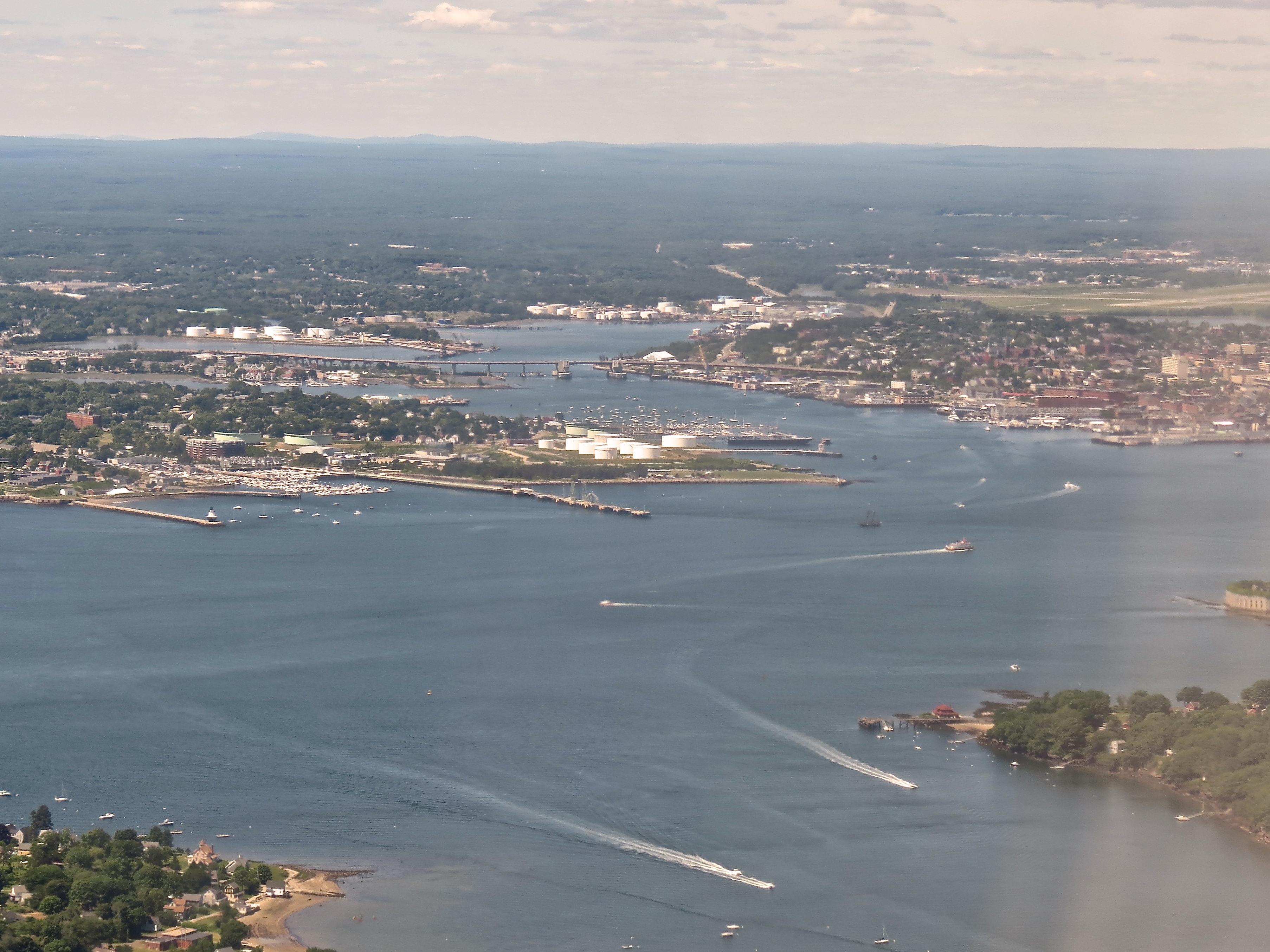 Bath. Little less than half the size of Brunswick lies the town of Bath, with a good harbor formed by the Kennebec River estuary, lined with huge cranes. The city is popular with tourists, many drawn by its 19th century architecture. It is home to the Bath Iron Works and Heritage Days Festival, held annually on the Fourth of July weekend. Abenaki Indians called the area Sagadahoc, meaning “mouth of big river,” a reference to the Kennebec River, which Samuel de Champlain explored in 1605. Logically, travelers from Bath, England settled in the town. Sagadahoc Bridge takes us over the river on Route 1.