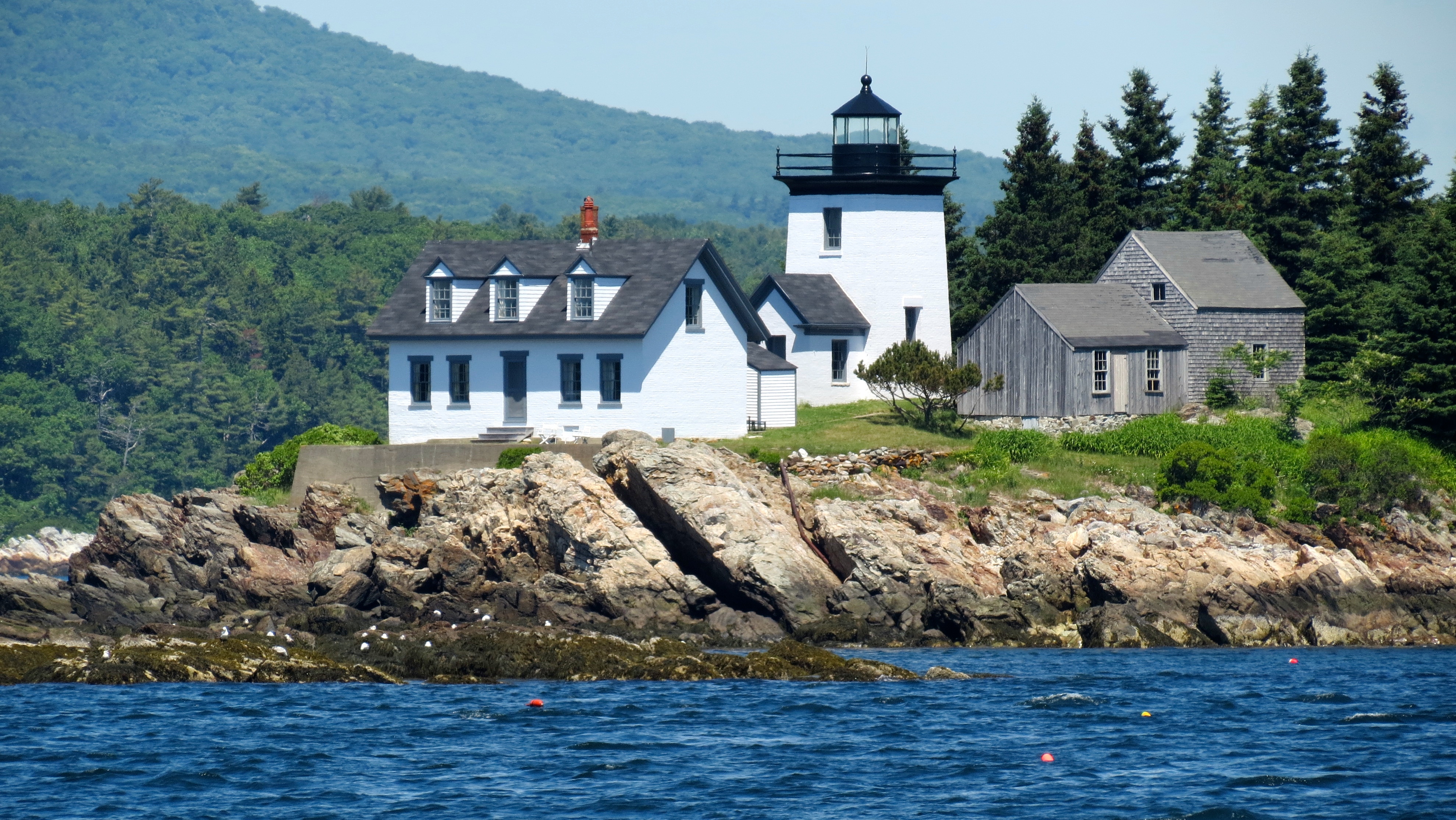 Mary Day does not have a motor, so a yawl, which is a Scandinavian name for “utility boat,” has to pull us through the harbor before the ship can sail. Slowly the schooner begins to move to the open bay, and the crew raises the sails. We have no set itinerary, letting the wind blow us in the right direction between the many offshore islands and inside passages. We pass by the lighthouse at Curtis Island and another at Indian Island.