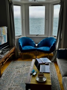 Accommodation Anomalies: Our first apartment had an expansive view of the Firth of Forth. We enjoyed watching the changing sky as the weather changed. The heat, light and water switches required time to figure out how they worked, and we were uncertain how to turn on hot water in the sink. We had some problems with the keys working. A heater device with an electronic flame provided welcoming warmth. Wednesday always wanted a bedroom with a balcony, now her wish had come true.