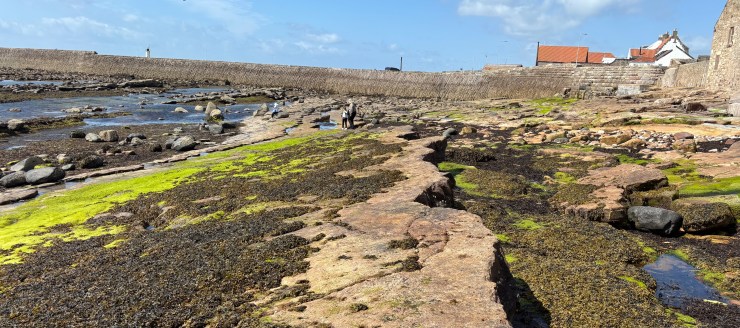 We ventured down to the craggy rocks to have a look into the tidal pools, filled with snails and barnacles. I can’t say it was an easy stroll with slippery algae and potential trip hazards! We walked deliberately because, as Jean said , we didn’t want to become embroiled with the ins and outs of the Scottish health care system.