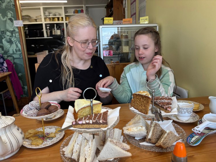 It seemed like the most logical place to go to next was the Vintage Tea Shop. Currently serving High Tea, the shop offered a selection of scones with jam and clotted cream, sandwiches, and cakes including lemon, vanilla, carrot, and rocky road. The plates and tea cups were adorned with flowered patterns and gold trim, giving the table a vintage appearance. The waitress brought an additional plate of cookies: chocolate-covered marshmallows with a strawberry filling because there were not enough goodies on the table.