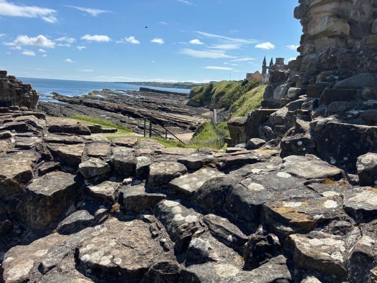 We walked to St. Andrew’s Castle, which stood on a rocky outcropping along the stunningly beautiful coastline of the North Sea. The. castle, built in the 13th century, lies in ruins from attempts to seize the fortress. We explored the various passages including the “bottle dungeon,” given the name for its shape. The audio tour explained the various sections of the remaining ruins and recounted the history through the experiences of a young boy caught as a prisoner during the seize. Although he survived, the terrifying recounting of starvation and bombardment, the silent walls appeared to retell his story.