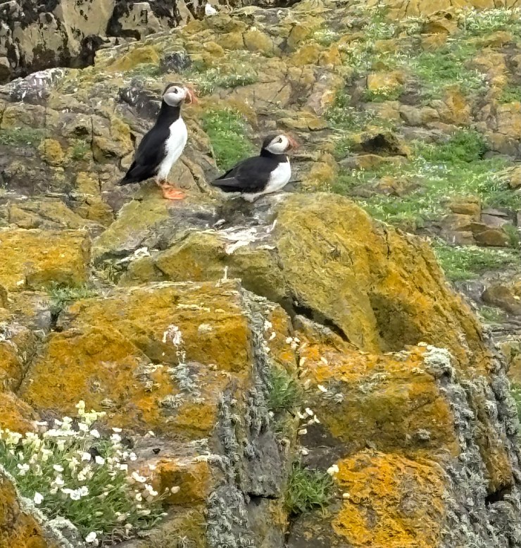 After leaving the docking area, we were struck by the vast sea vistas and the hundreds of birds flying overhead. Over 100,000 Puffins make their nests on this island, and over 300 different species of birds have been recorded. We were fortunate to be on the island in July, for once the chicks are raised, the Puffins go off fishing and the entire colony disappears. The naturalist warned us to stay on the trails, as the Puffins create burrows for their single chick. I can’t imagine anyone wanting to walk off the path, as one could easily break an ankle in one of those numerous underground tunnels.