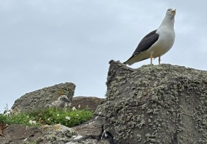 Back on the trail, we came upon the Lesser Black-Bscked Gull making loud squawking barks at us as we passed. I then noticed a little gray chick perfectly camouflaged against the rock.