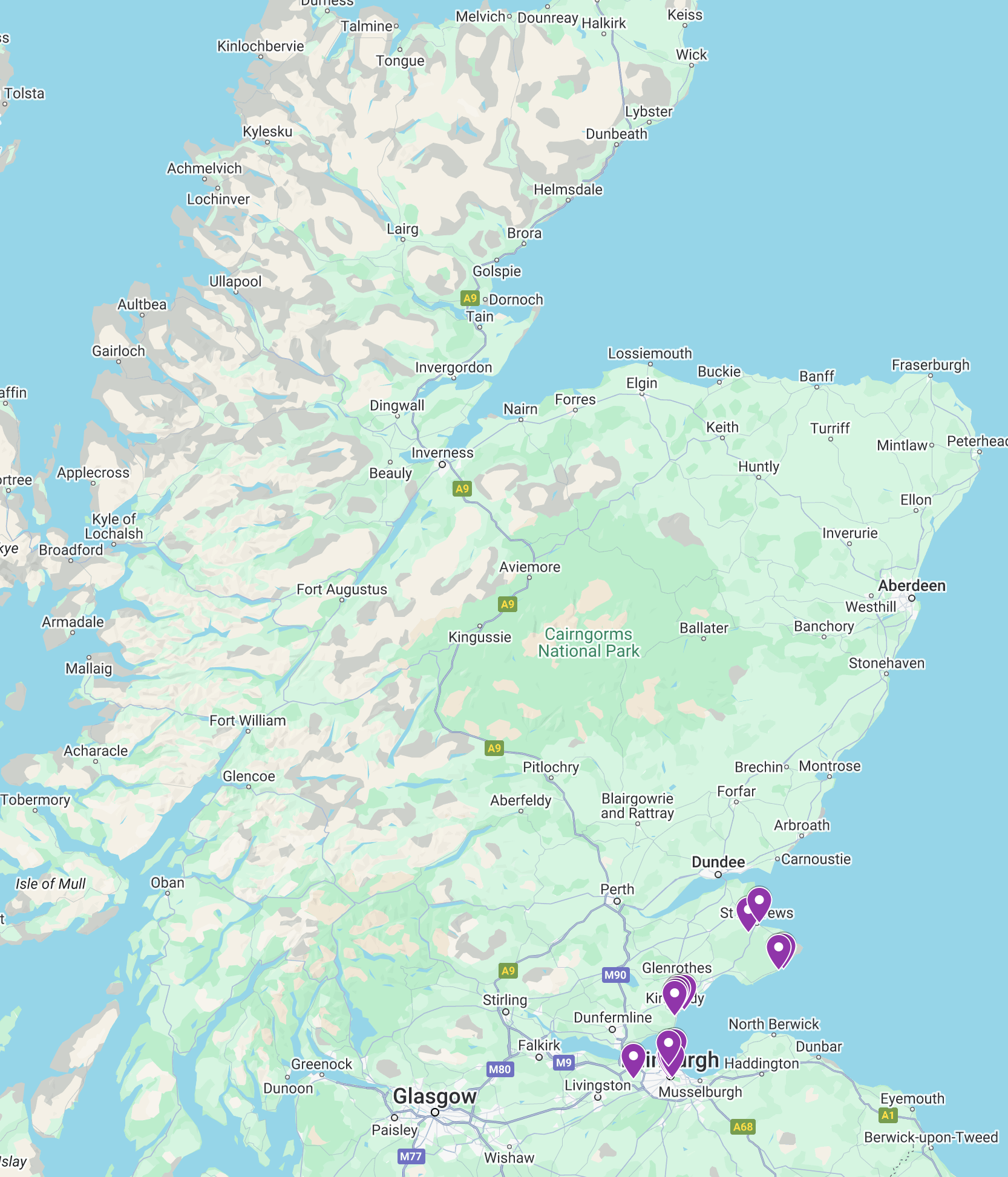 Looking at the map, one might think with such vast scenic views across Scotland, why would we stay in a smaller section of the country. We are three generations making the pilgrimage, and my purpose is to give my granddaughter an opportunity to visit some of the major sites but additionally for her to experience living in a different country with the emphasis on meeting the people: going into grocery stores, talking with children on the playgrounds, experiencing the ambiance of waking up and seeing fishing boats.