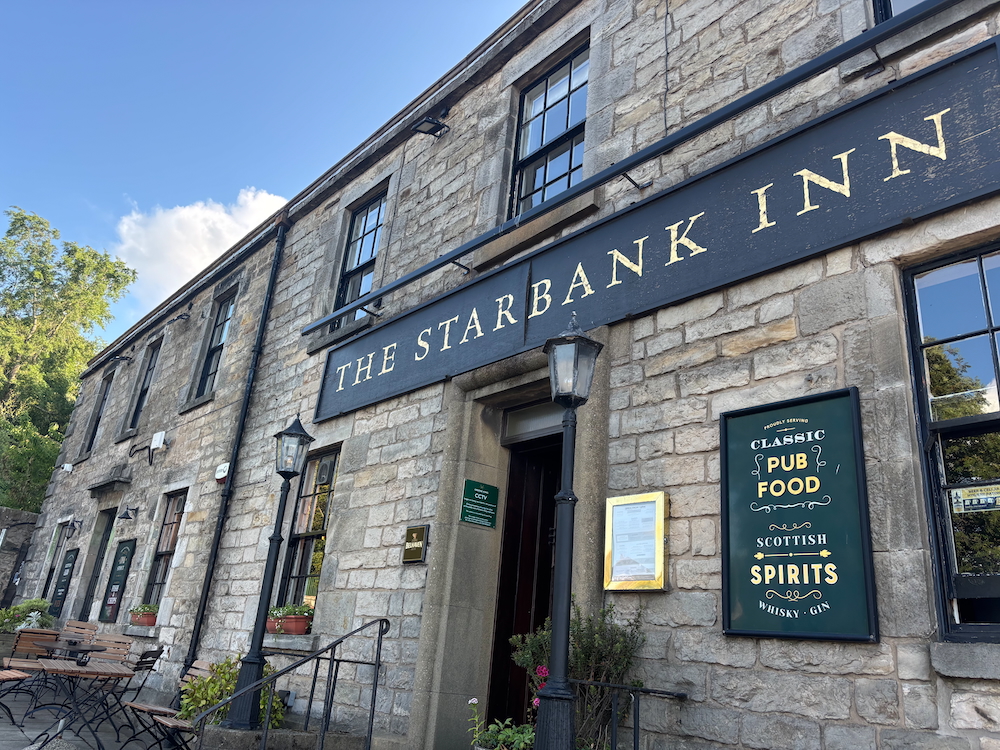 We had our second dinner at a traditional pub just steps away from our accommodation. The Starbank Inn dates back to the 19th Century. History of the area was written on the wall and explained the name of the street. Before the Inn was built, “wee” cottages lined the embankment facing the Firth of Forth. Folks would light candles in the windows to help fishermen return home safely. The candles burned so brightly in the night, they were like stars, thus the name “starbank cottages”. I enjoyed a bowl of mint pea soup with fresh bread.