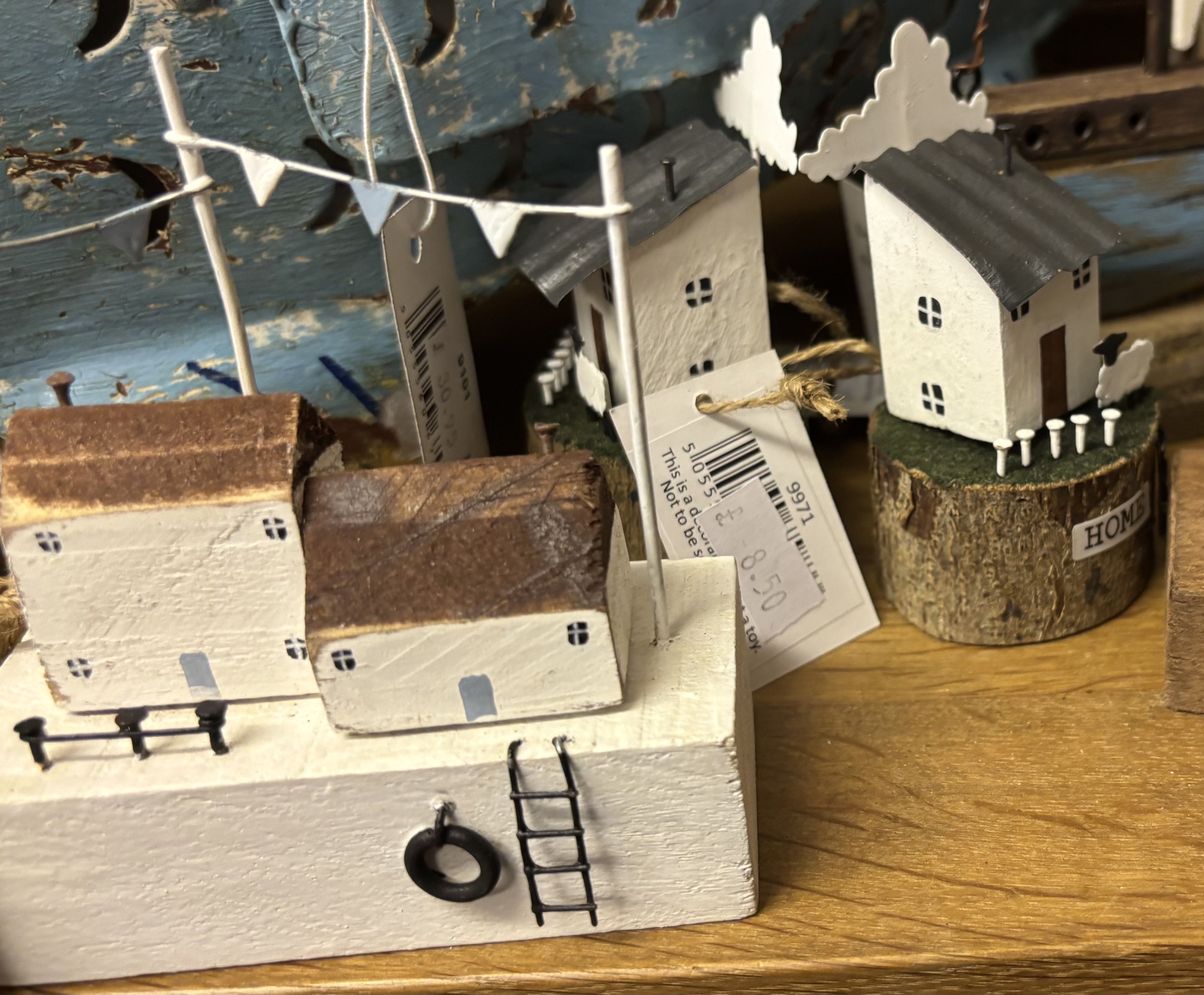 We wandered into one of the local gift shops, where a wooden tiny-scale replica of white-washed houses on a pier brought an image to my memory long forgotten.