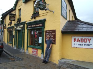 I came across a coincidence in doing a check of our Irish ancestors. I had decided that we would stay a few days in Westport before joining the Sierra Club group. Westport is one of the prettiest towns in Mayo County, and a few days rest in Westport before beginning our mountain climbing seemed like a good idea. Turns out that when I checked our family tree, one of our relatives was born in Westport in the early 1800s–William Kerr was the son of David Alexander Kerr and Mary Goss. According to family history, D. A. Kerr owned a confectionary store in Westport. One of their other sons, John Kerr, our direct descendent, was born in Paisley, Scotland. Another son was born in Cork, Ireland. (More on that family history on the Journey through Time webpage.) So the trip certainly will have added meaning. We can tell Phillip he will be walking down the streets that his ancestors once trod.