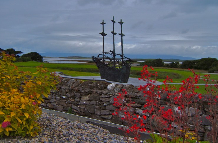 As the view of the Croagh Patrick came into sight, I could hardly believe we’re going to climb on what looked like a very steep, narrow ridge. At the base of the mountain stood a famine memorial, an iron work in the form of a ghost ship with sails of human skeletons.