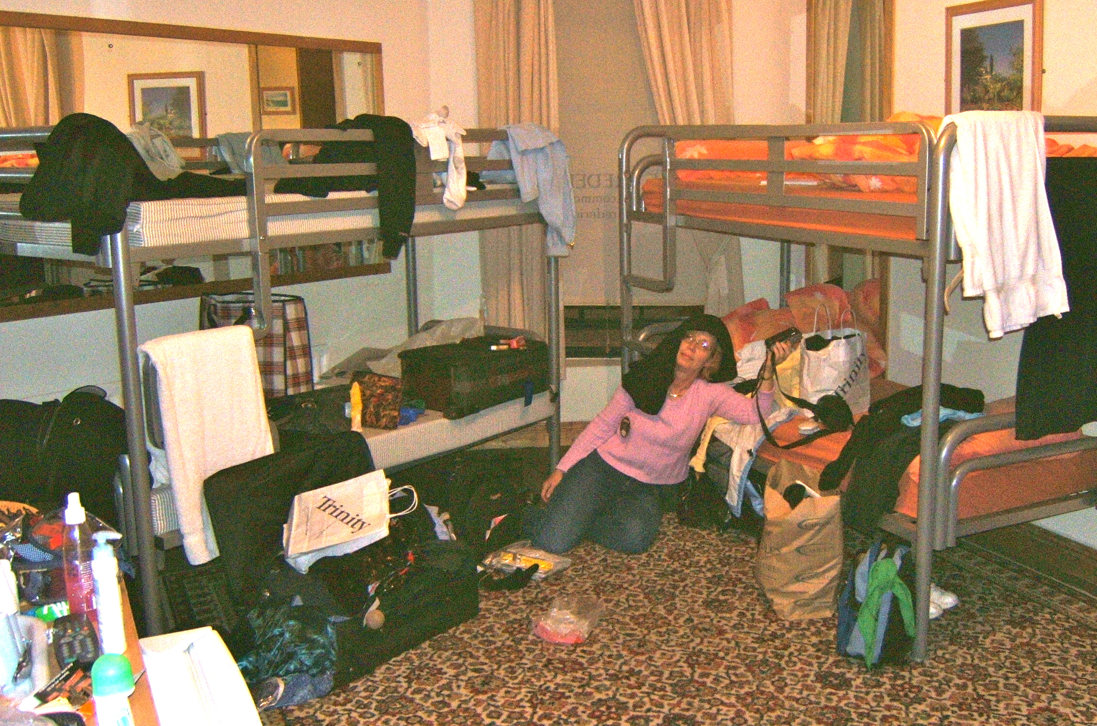 When we arrived in Dublin, we had some difficulty locating our hostel, The Frederick, but finally reached our destination after wandering the city while lugging our suitcases. A Scotsman greeted us at the door, and we enjoyed a funny repartee. We settled into a six-bunk mega-room due to some mix-up. In no time our stuff spilled out all over the place.