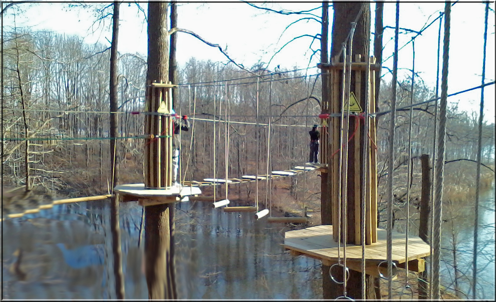 The course is made up of numerous rope ladders, 42 exciting crossings to include the Double Stirrups, Zigzag Trapeze, Flying Carpet and Canyon Crossing, 2 Tarzan swings and 5 zip lines. Overall, there are 5 individual sections within the course, each section taking you higher into the forest canopy and finishing with a zip line longer and with more expansive views of the pond than the previous one! Zip Line #4 and #5 are both well over 650 feet and the entire course consists of over 2,191 feet worth of zip lines, providing some of the longest zip-lining experiences in the state and region!